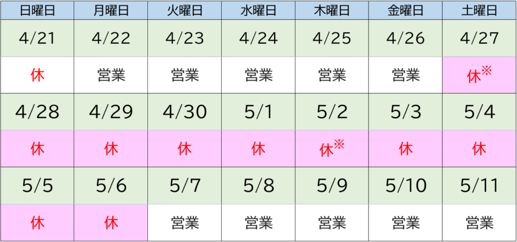 ゴールデンウィーク休業日